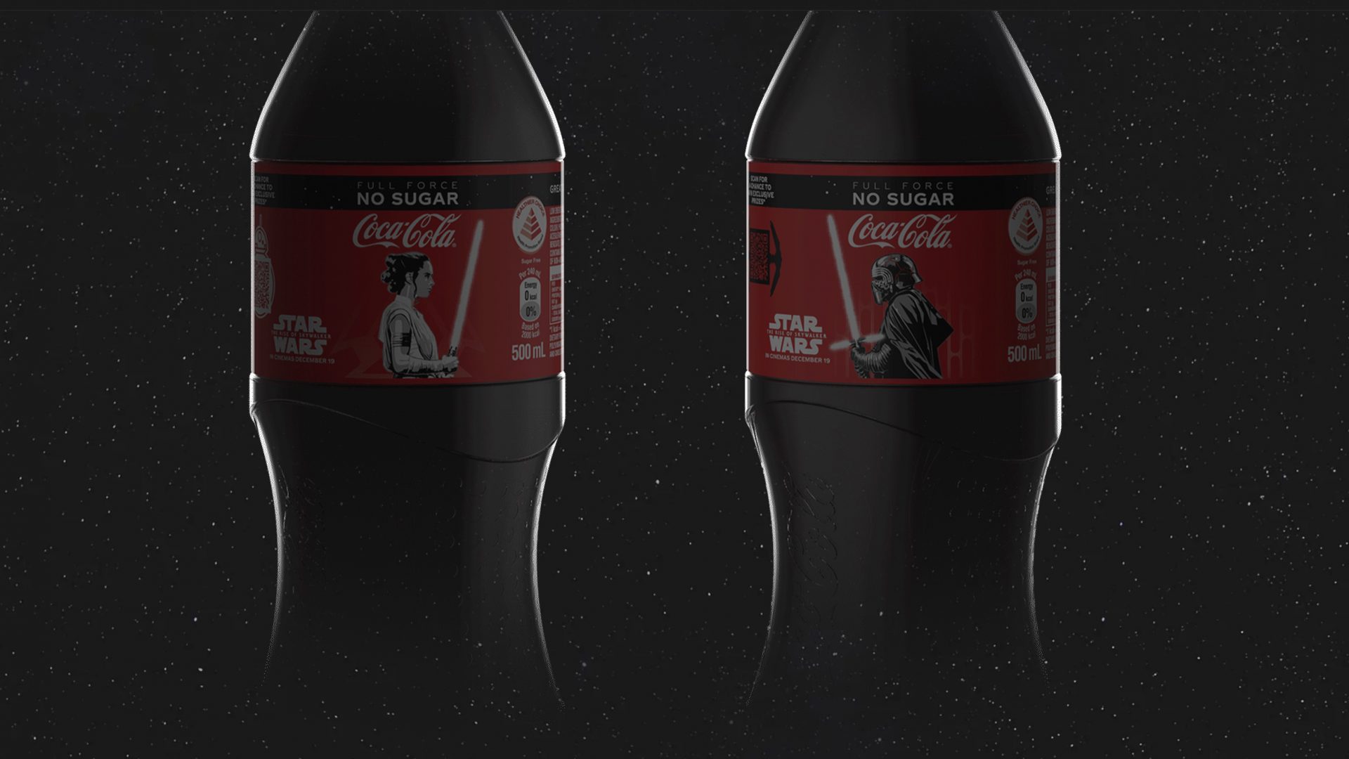 Berlínsky startup Inuru vytvoril fľaše na Coca-Colu s inteligentnými štítkami, zabudovanou batériou a miniatúrnym OLED displejom, ktorý rozsvecuje meče postáv Rey a Kyla Rena vždy keď sa dotknete štítkov. Coca-Cola plánuje vydať iba 8 000 takýchto fliaš v rámci propagácie „Galactic Hunt“. Film Star Wars: The Rise of Skywalker bude mať premiéru 20. decembra.