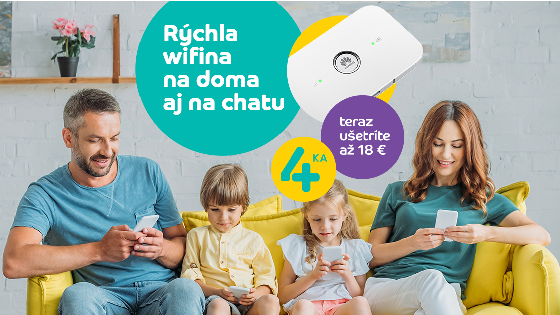 4ka prináša riešenie pre tých, ktorí v tejto dobe potrebujú dáta pre svoje fungovanie doma alebo napríklad na chate. Zvýhodnená ponuka Sloboda Data na doma platí pre každého, kto si od 8. 4. cez webstránku objedná novú 4ka SIM kartu spolu s novým dátovým paušálom Sloboda Data aj s modemom Huawei E5573. Na prvý mesiac zákazník dostane paušál Sloboda Data, ktorý obsahuje nekonečné dáta v celej SR v hodnote 14 EUR, zdarma.