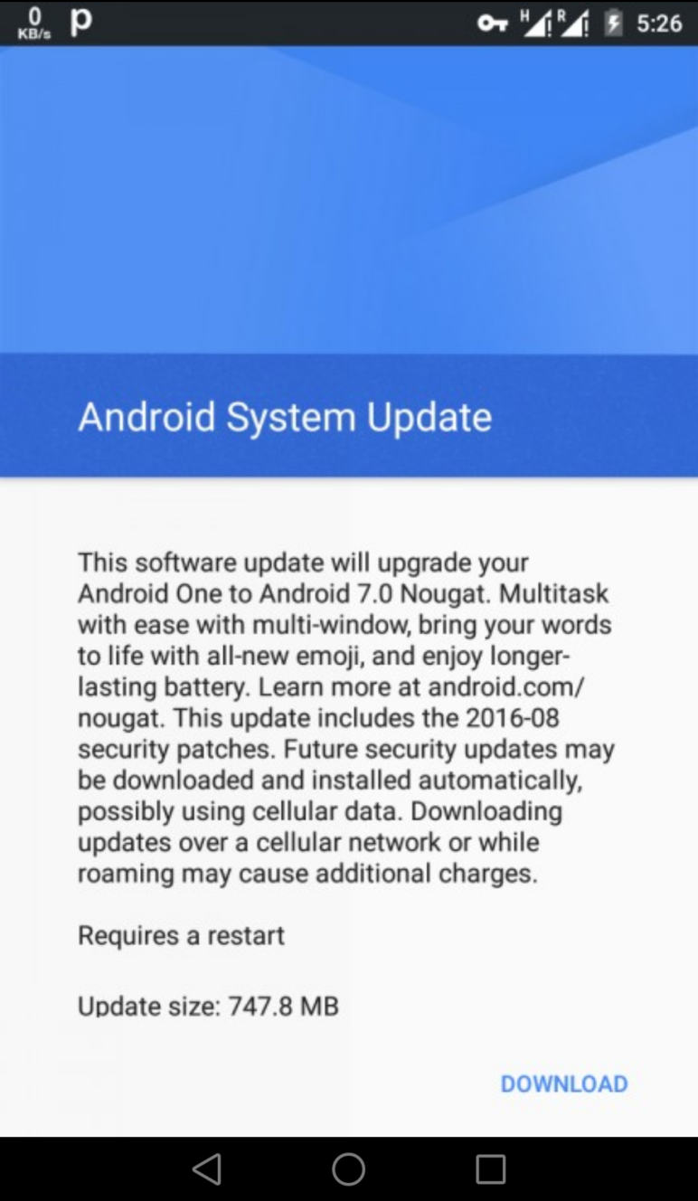 Google uvoľnil pre svoje základné zariadenia Android One aktualizáciu na nový Android 7.0 Nougat.