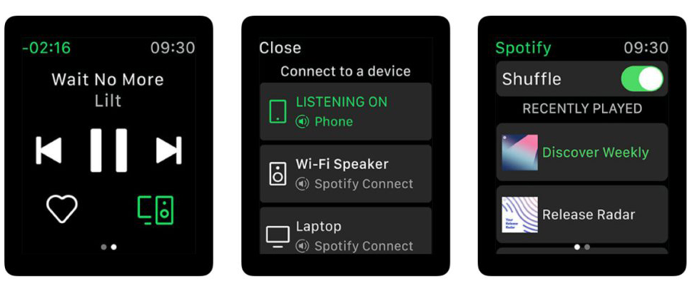 Spotify uvoľnila prvú verziu aplikácie pre Apple Watch. Používatelia ju získajú aktualizovaním aplikácie Spotify pre iPhone. Aplikácia nenahrádza streamovanie hudby a funkciu offline prehrávania, zameriava sa len na ovládanie prehrávania z iPhonu.