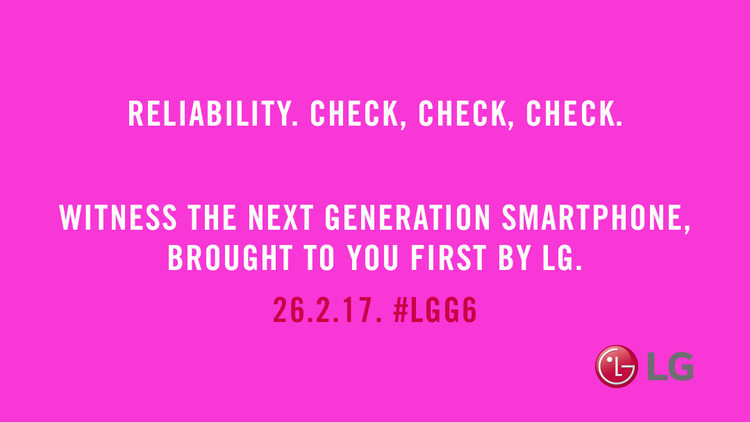 MWC 2017 sa nám pomaly blíži a najnovšie pozýva na konferenciu LG, ktoré predstaví svoj nový smartfón LG G6. Hlavné heslá posteru sú reliability (spoľahlivosť) 3x slovo check (kontrola). Uvidíme, čo sa skrýva za týmito heslami už 26. februára.