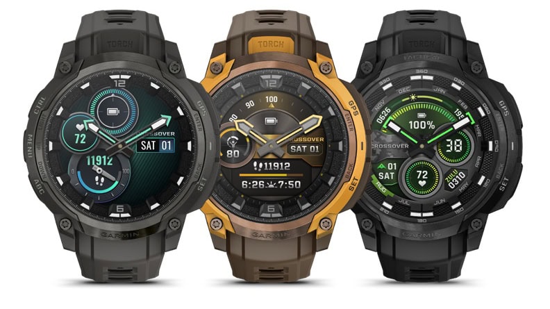 Instinct Crossover AMOLED sú hybridné GPS smart hodinky s analógovými ručičkami a 1,2″ AMOLED displejom. Ten chráni zafírové sklíčko, robustná konštrukcia spĺňa vojenský štandard MIL-STD 810 zabezpečuje odolnosť voči nárazom a extrémnym teplotám. Instinct Crossover AMOLED budú dostupné za 599,99 €, verzia Tactical za 699,99 €.