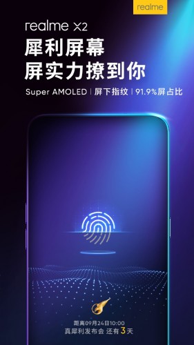Realme X2 bude síce oficiálne predstavený až 24. septembra, už teraz však vieme minimálne to, že novinka bude mať Super AMOLED displej s čítačkou odtlačkov pod displejom. Tá má byť schopná odomknúť telefón len za 0,36 sekundy.