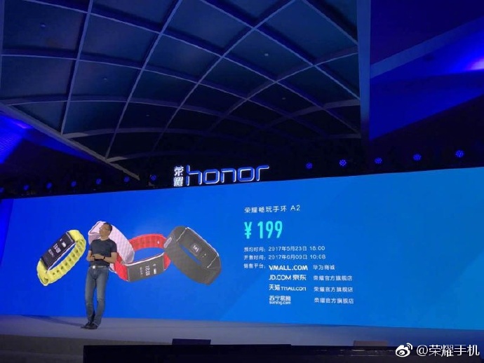 Keď už sa ten Honor tak rozbehol s novinkami, spomeňme ešte jednu. Je ňou fitness náramok Honor Band A2, ktorý, oproti predchodcovi, prichádza z výraznými novinkami. Má 0,76-palcový OLED displej, snímač tepovej frekvencie a vodeodolnosť podľa IP67. Batéria má kapacitu 95 mAh a náramok sa začne predávať v júni 2017 za 199 ¥ (cca 26 €).