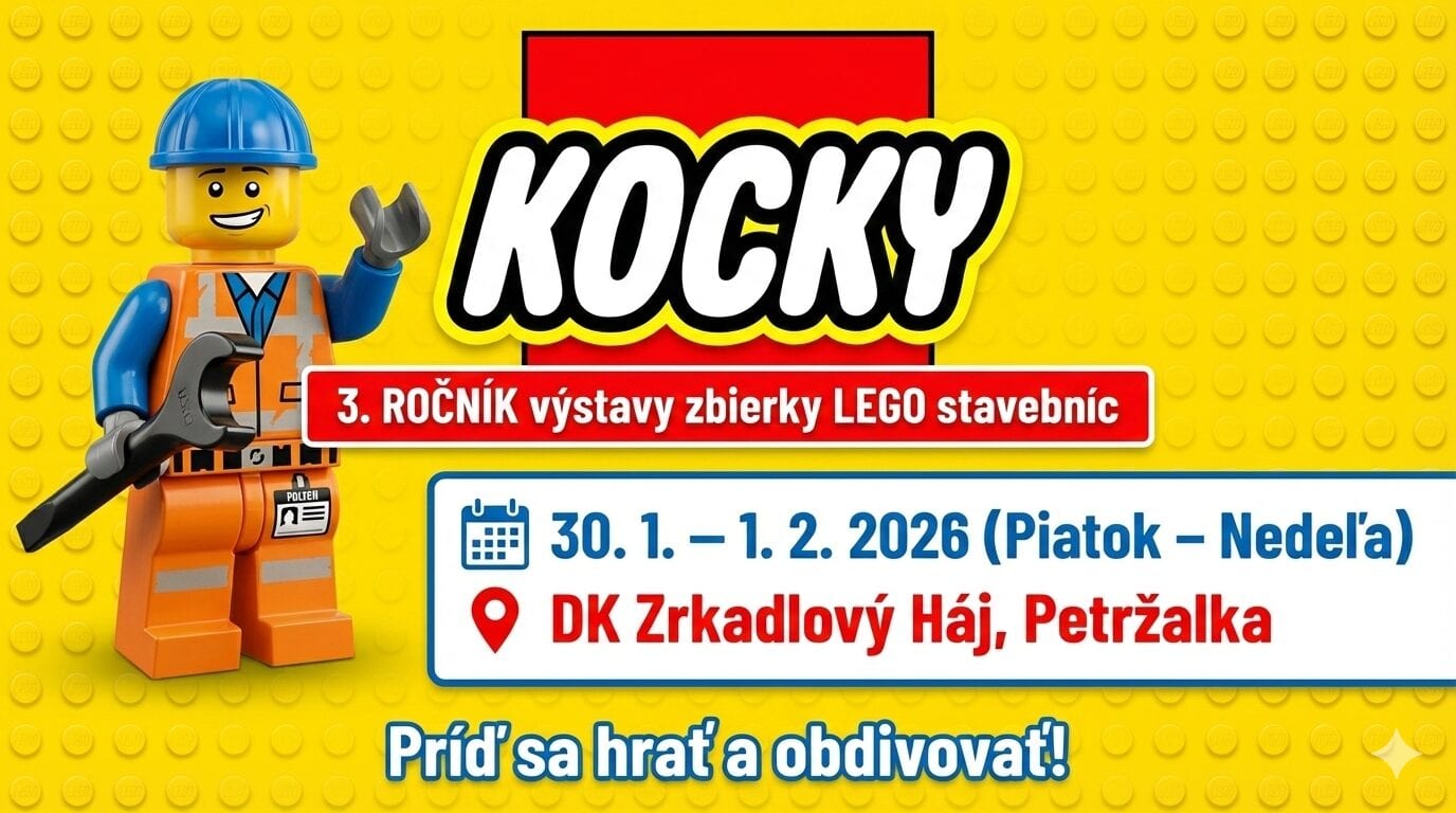TopMáte radi LEGO? Tento víkend, dokonca už od piatku 30. januára 2026 a len do nedele 1. februára 2026 si môžete LEGO užiť na výstave KOCKY v bratislavskej Petržalke. Už 3. ročník výstavy sa koná v DK Zrkadlový háj (Rovniankova 3), vystavovateľmi sú Pavol a Michaela Čavojskí, ktorí tu ukážu viac než 1 000 modelov LEGO. Nebude chýbať napríklad kompletná séria Technic SUPERCAR od roku 1978, rozsiahla LEGO City dioráma či novinka – vesmírnu loď Star Trek – Enterprise D a mnoho iného.