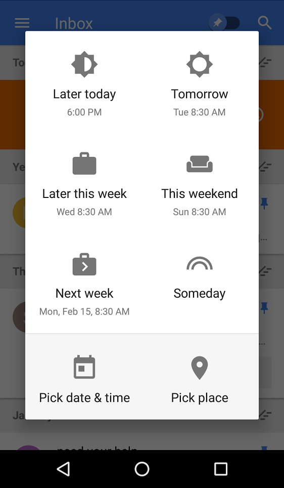 Google aktualizoval svoju aplikáciu Inbox. Nová verzia prináša vylepšenia v službe snooze, ktoré prinášajú nové časy na odloženie e-mailu a drobné zmeny v dizajne.