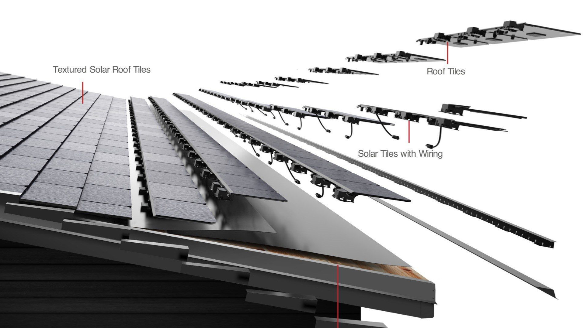 Tesla si patentovala technológiu spájania solárnych stršných panelov, ktorá umožňuje rýchlejšiu inštaláciu. Nový patent ukazuje možné riešenie výroby a montovania solárnych strešných škridiel v spojených skupinách. Cena takejto strechy je rovnaká, ako pri obyčajnej šindľovej streche (bez solárnych vložiek).
