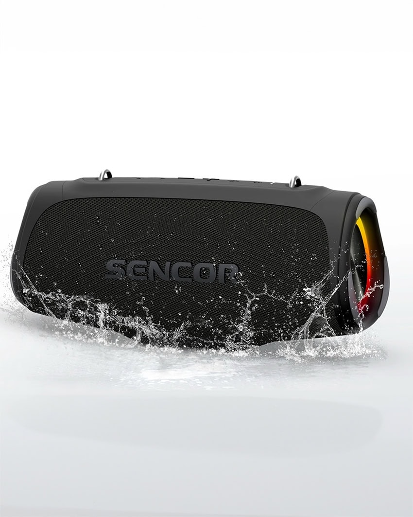 Sencor Resonex Midi na prvý pohľad pôsobí ako reproduktor, ktorý má jasno v tom, na čo je určený. Robustné telo, výrazné LED podsvietenie a praktické držadlo naznačujú, že ide o zariadenie určené nielen na zábavu doma aj v exteriéri.