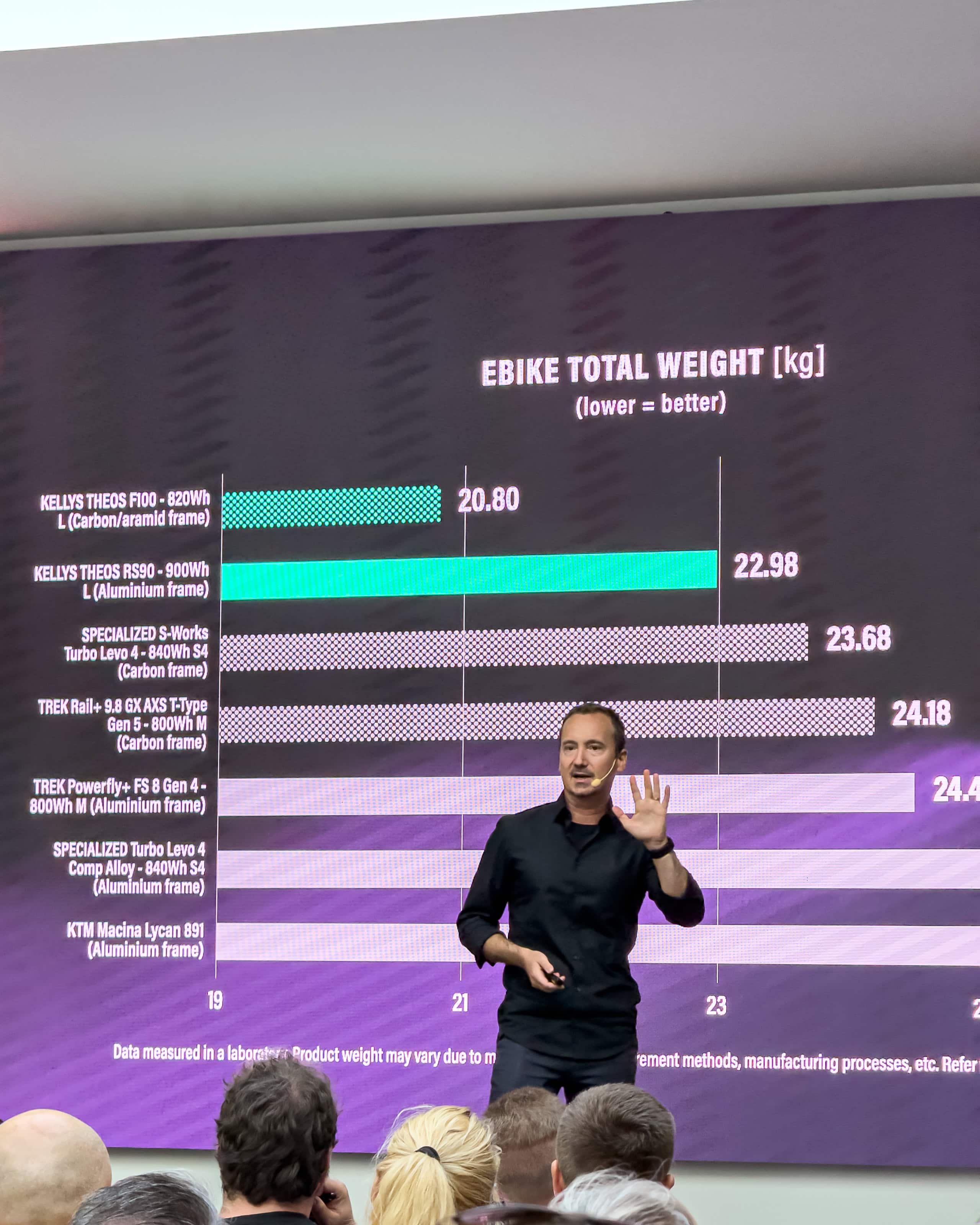 Táto úspora sa nakoniec priamo premieta do celkovej hmotnosti elektrobicyklov. Nový vlajkový model KELLYS THEOS F100 s karbónovo-aramidovým rámom a 820 Wh batériou dosahuje neuveriteľnú hmotnosť 20,80 kg, čím sa stáva jedným z najľahších plnohodnotných e-enduro bicyklov na svete. Aj hliníkový a celkom nový model THEOS RS90 s masívnou 900 Wh batériou váži len 22,98 kg, čo je menej ako mnohé karbónové bicykle konkurencie s menšími batériami.