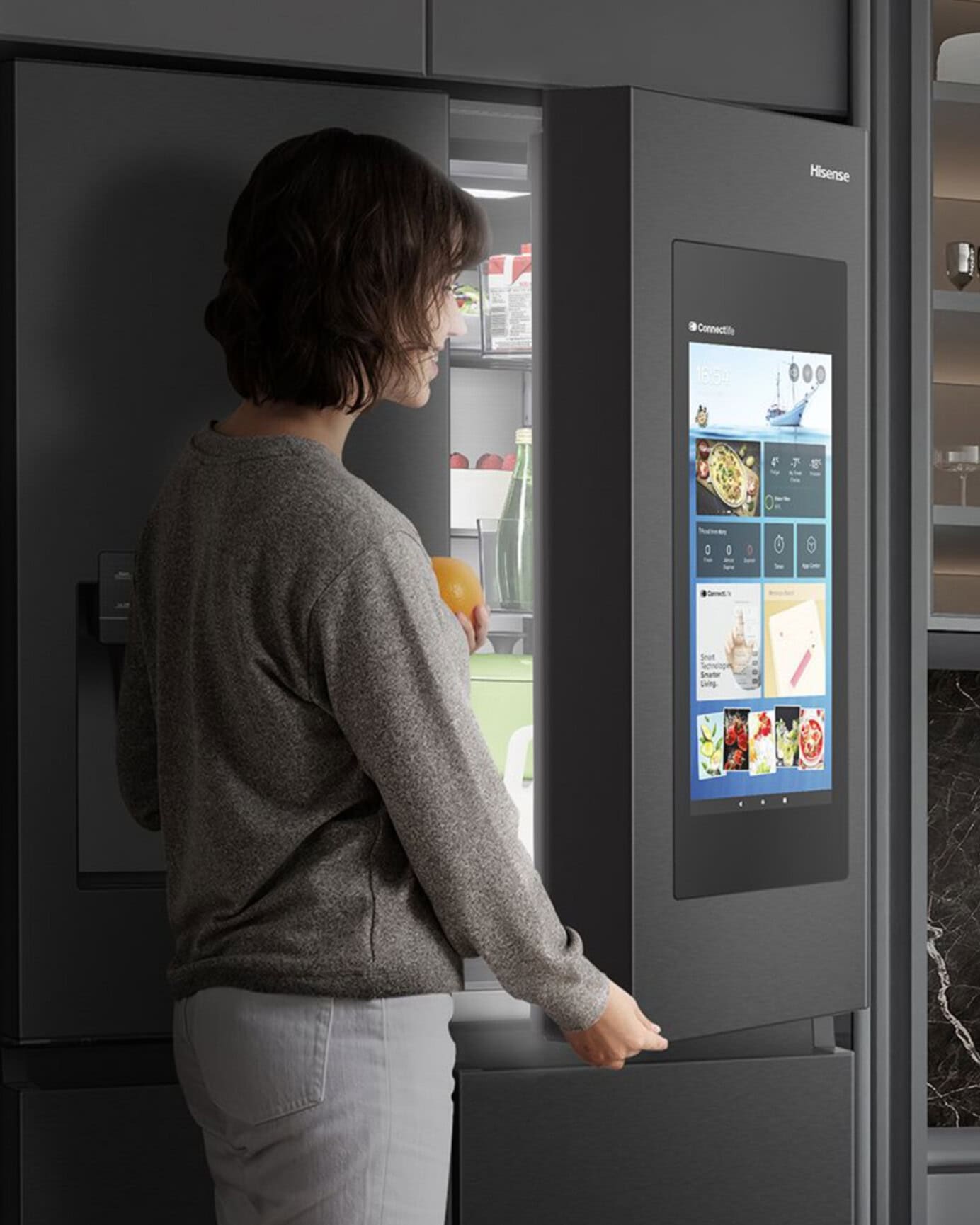 Výborné smart riešenie je na chladničke aj displej. Ide vlastne o zabudovaný tablet, ktorý sa vie pripojiť k internetu a obsahuje všetko dôležité. Od prehliadača, resp. appky, v ktorej si vyberáte recepty, dokonca aj na základe ingrediencií v chladničke. Rovnako na displeji chladničky nechýba možnosť poznámok, ktoré sa vedia zobrazovať v štýle post-it papierikov.