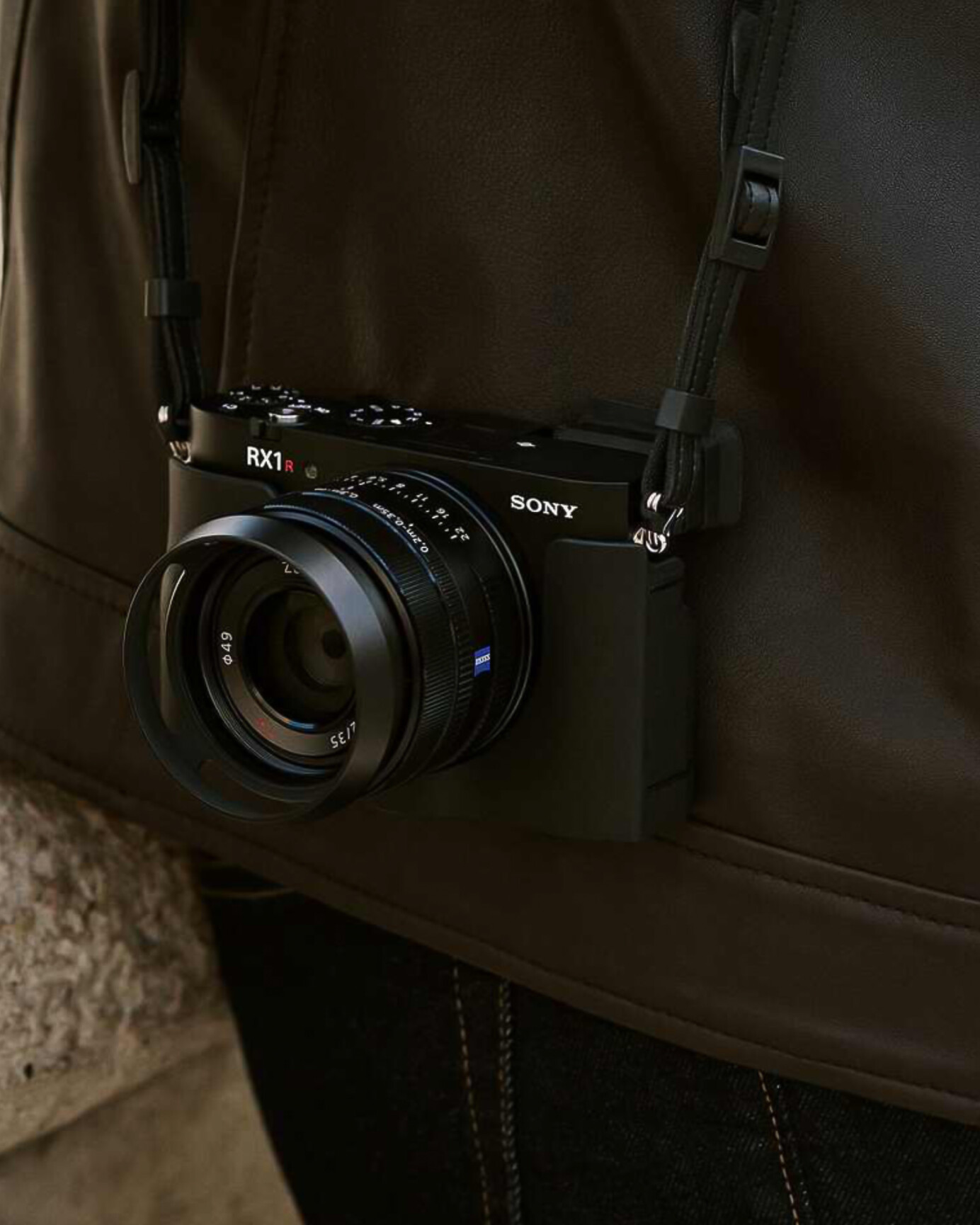 Tým je dnes už legendárny ZEISS Sonnar T* 35mm f/2, ktorý je známy svojou výnimočnou ostrosťou, no bez stabilizovaných členov. Jeho optická konštrukcia pozostáva z ôsmich prvkov v siedmich skupinách, vrátane troch asférických prvkov. Maximálna svetelnosť f/2 spolu s 9-lamelovou clonou zaisťuje až luxusný bokeh. Minimálna zaostrovacia vzdialenosť v normálnom režime je 30 cm, no po prepnutí do makro režimu sa skráti na 20 cm.