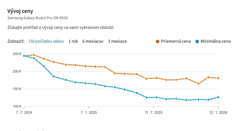 Ako vidíte v grafe, tak cena oproti tej pôvodnej postupom času klesala. Aktuálne si slúchadlá držia cenu okolo úrovne 140 eur, takže ak plánujete ich kúpu, teraz je ten najlepší čas.