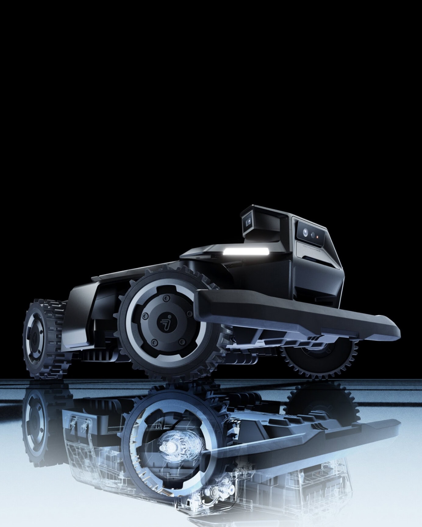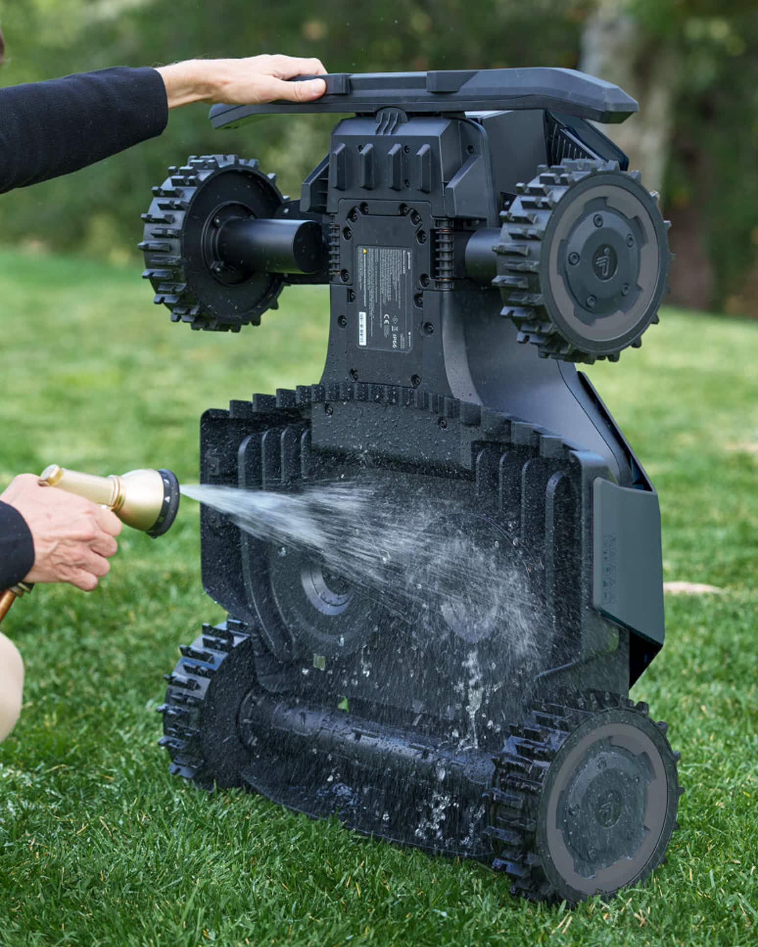 Samotnú trakciu zabezpečujú kolesá s agresívnym dezénom a priemerom, ktoré poskytujú svetlú výšku podvozku približne 7 cm, čo stroju umožňuje prekonávať vertikálne prekážky, korene či obrubníky s ľahkosťou, ktorú bežné nízke roboty neposkytujú.