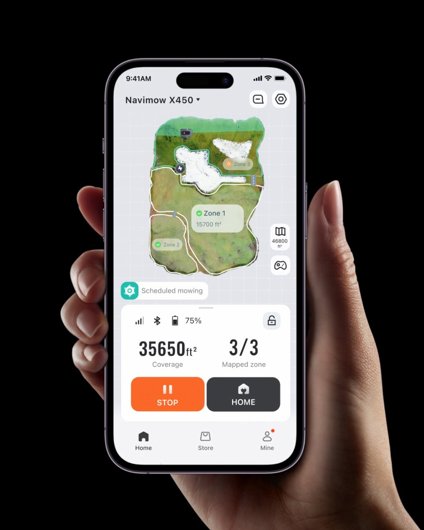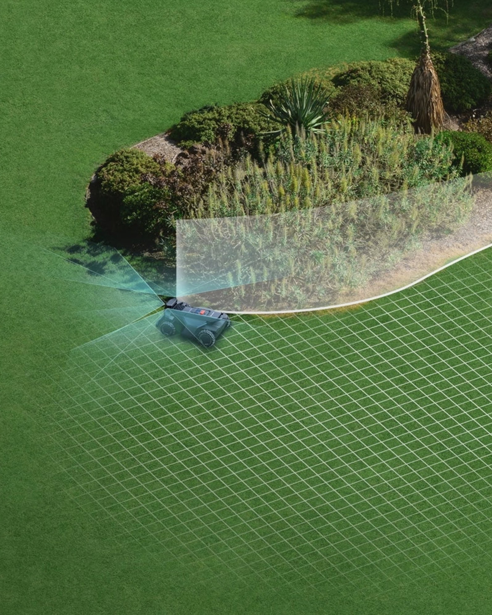 Kombinácia 360-stupňovej RGB kamery a ToF (Time-of-Flight) senzorov umožňuje kosačke detegovať a klasifikovať vraj viac ako 200 typov objektov, od záhradného nábytku až po domáce zvieratá, a to aj v noci vďaka nočnému videniu. Mapovanie záhrady prebieha plne automaticky – kosačka sama preskúma hranice a vytvorí si virtuálnu mapu, ktorú môže používateľ následne editovať v aplikácii pomocou funkcie GeoSketch.