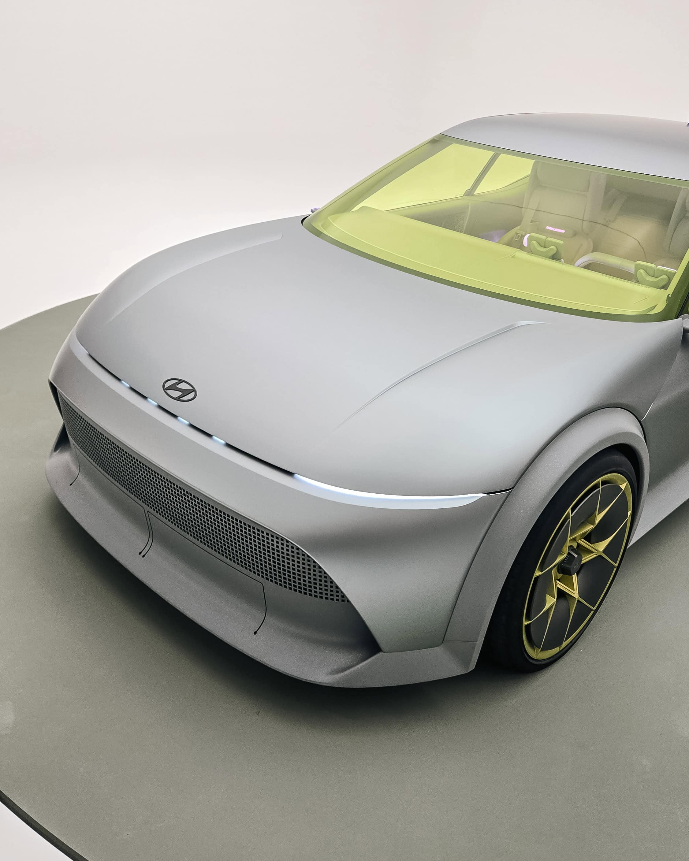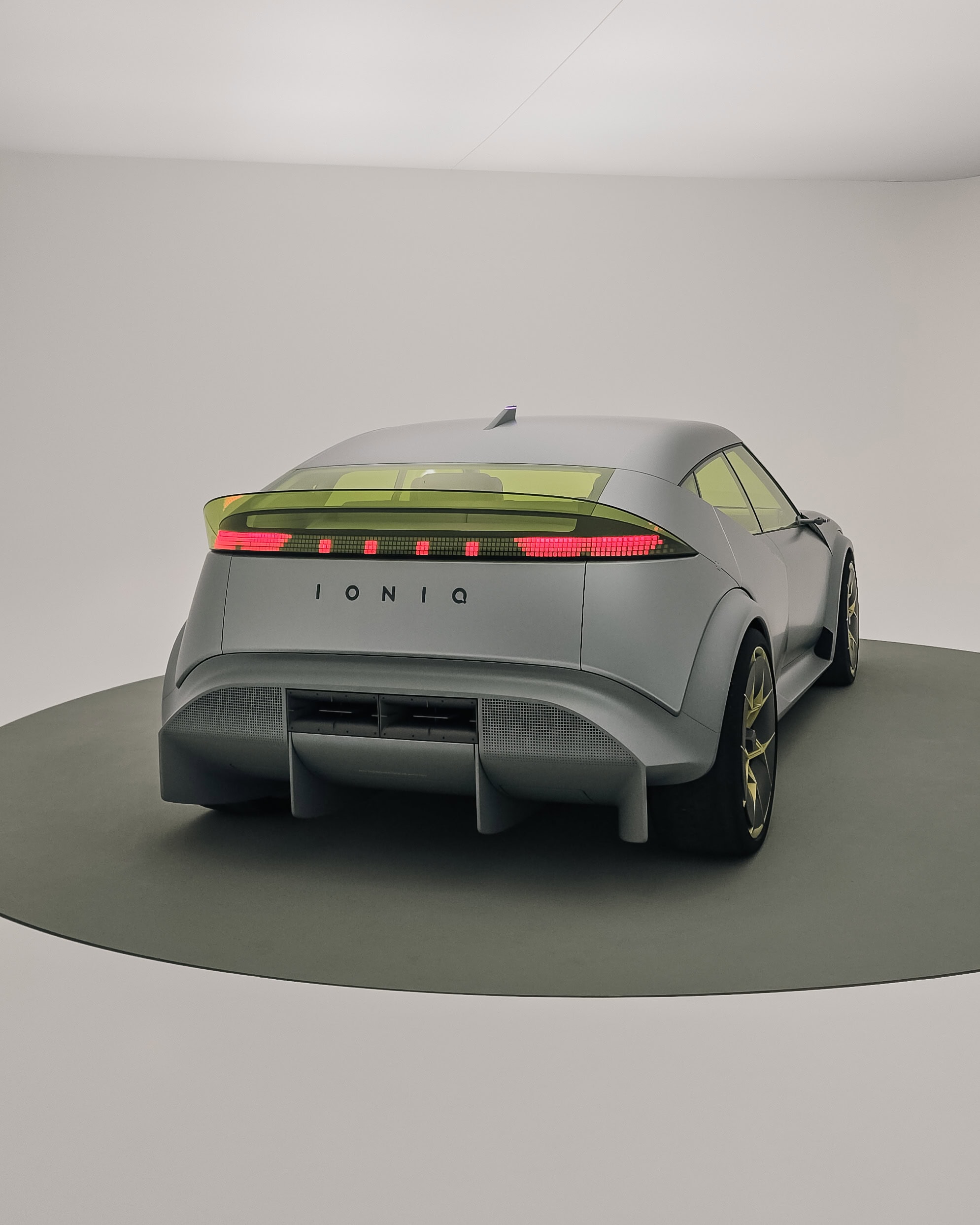 Huyndai Concept THREE je kompaktným elektrickým hatchbackom, na ktorý sa môžete tešiť už o rok s pravdepodobným označením IONIQ 3. Základom pri tvorbe konceptu bol dizajnový jazyk v štýle Art of Steel, čo vidieť na viacerých prvkoch elektromobilu, ktorý sa nám predstavil v matnom prevedení. Najmä zadná časť s „C“ stĺpikom je doslova vytvorená elegantným ohnutím ocele… veľkým lákadlom konceptu je obrovský spojler, ktorý je však vďaka priehľadnému materiálu nenápadný. Efektne sú tu zakomponované zadné svetlá s prvkami Parametric Pixel.
