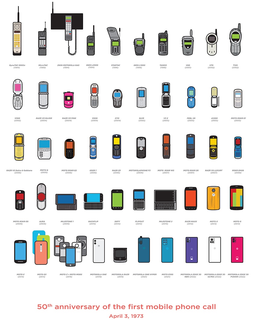 Na oslavu 50. výročia pripravila Motorola ilustráciu 50 doteraz najikonickejších zariadení.