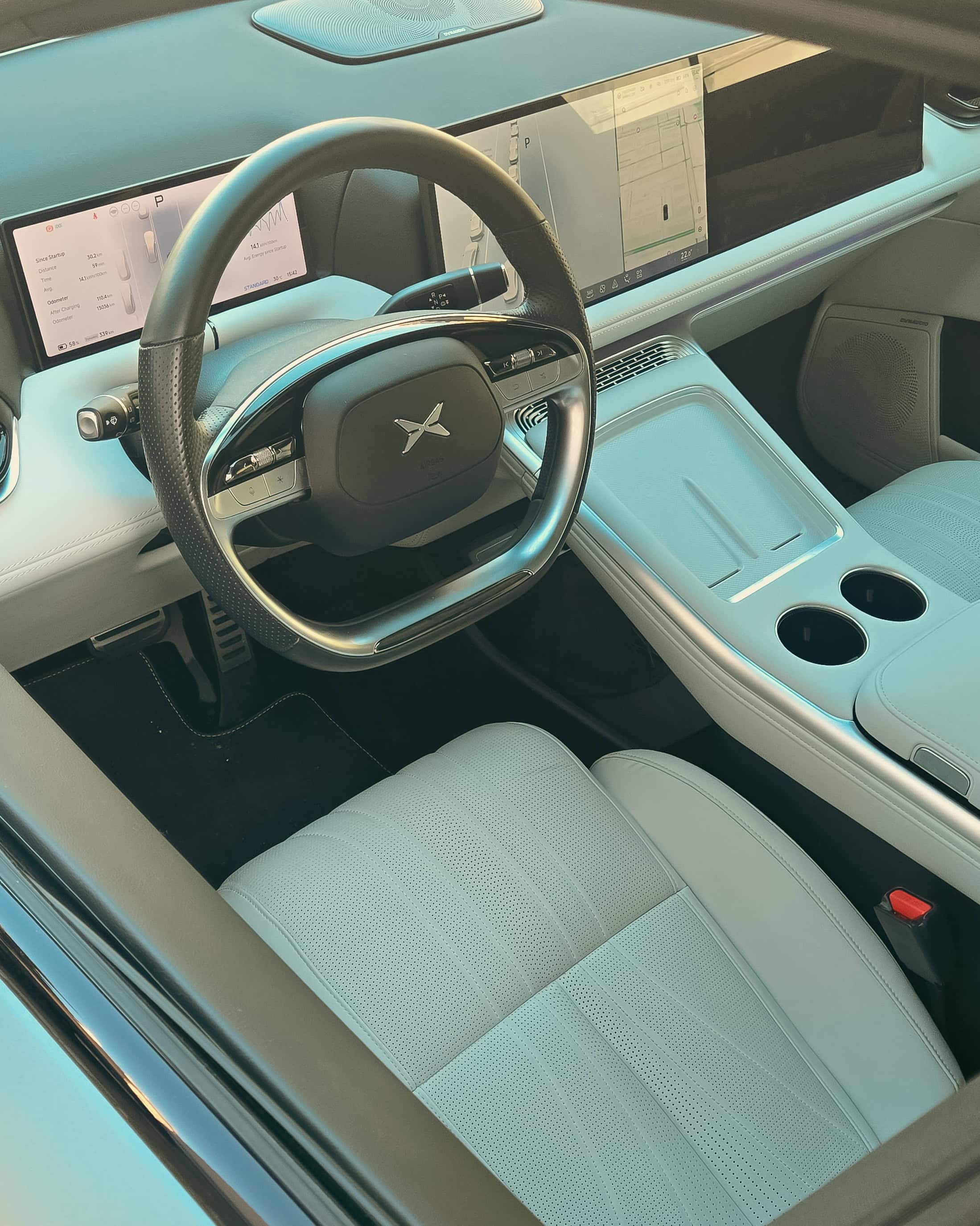 Xpeng G9 zaujme interiérom, ktorý môže byť vďaka paketu Premium Seat & Audio ešte bližšie k najvybavenejším prémiovým modelom. Masážne sedadlá, vrátane vyhrievania a chladenia máte aj vpredu či vzadu, nechýba špičkový audiosystém či obrovské displeje vpredu, kde prístrojový má 10,25″, no zvyšné dva zhodne po 14,96″. Jedine, čo tu chýba a nemôžete si za to priplatiť je head-up displej či matrixové svetlá.